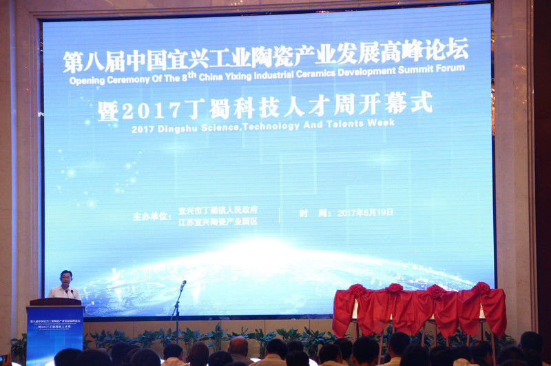 第八屆中國(guó)宜興工業(yè)陶瓷產(chǎn)業(yè)發(fā)展高峰論壇暨2017丁蜀科技人才周開幕式于5月19日上午在宜興紫砂賓館舉行。開幕式由丁蜀鎮(zhèn)人民政府鎮(zhèn)長(zhǎng)儲(chǔ)鑫主持,來(lái)自中國(guó)陶協(xié)的相關(guān)領(lǐng)導(dǎo)及會(huì)員單位、相關(guān)領(lǐng)域?qū)<医淌诩翱蜕?、市?zhèn)相關(guān)領(lǐng)導(dǎo)等350余人參加了開幕式。