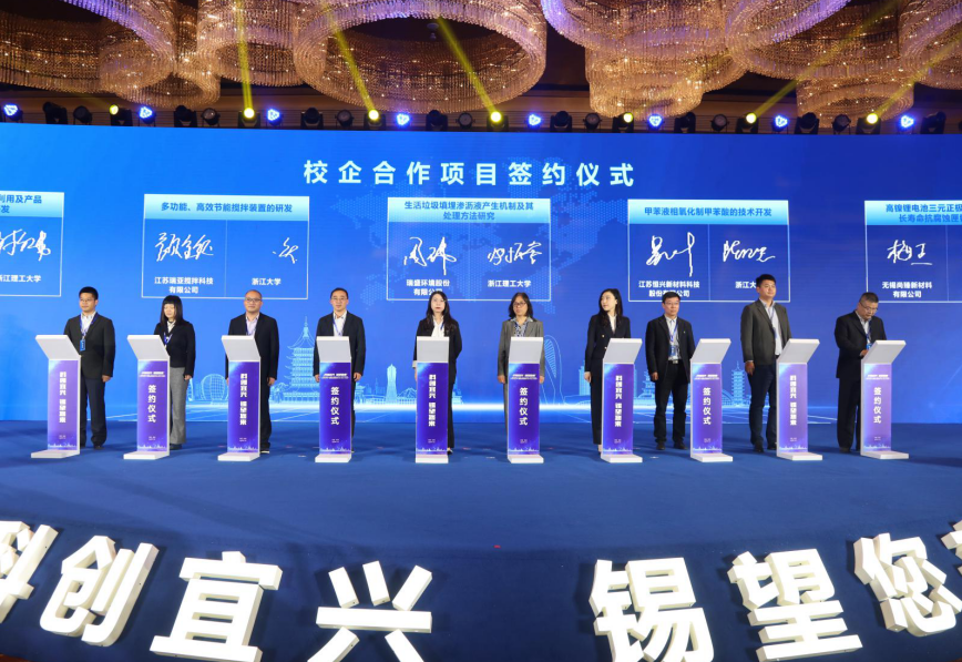 本次活動宜興、杭州兩地政校企三方深化互信、攜手共進取得重要成果。活動中,入孵企業(yè)尚臻新材料與浙江大學(xué)王家邦教授合作的“高鎳鋰電池三元正極材料燒結(jié)用長壽命抗腐蝕匣缽項目”登臺進行簽約展示。