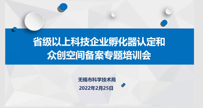 為了推動(dòng)全市科創(chuàng)載體的高質(zhì)量發(fā)展,促進(jìn)全市的科創(chuàng)載體平臺(tái)建設(shè)提檔升級(jí),打造一批具有國家、省級(jí)行業(yè)影響力的科創(chuàng)載體。2月25日,無錫市科學(xué)技術(shù)局舉辦了*********、省級(jí)孵化器、眾創(chuàng)空間認(rèn)定及備案的線上培訓(xùn)會(huì)。公司組織管理團(tuán)隊(duì)參加了此次線上培訓(xùn)班。
